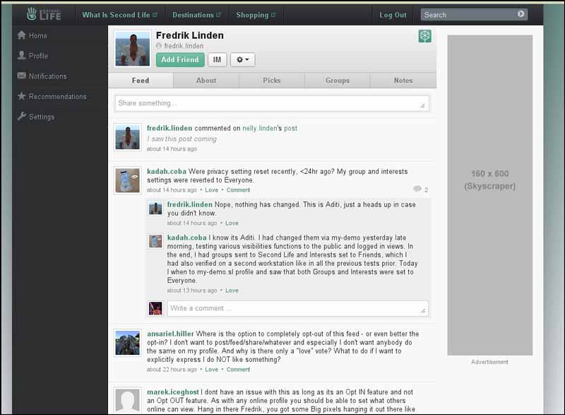 Web-ProfileB Published 2011/07/15 at 800 × 587 in New Second Life Web Profiles on Demo ← Previous SL Demo Web Profile in Chrome – Click to Enlarge